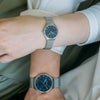文字盤に海の色を取り入れたネイビーブルーのペア。