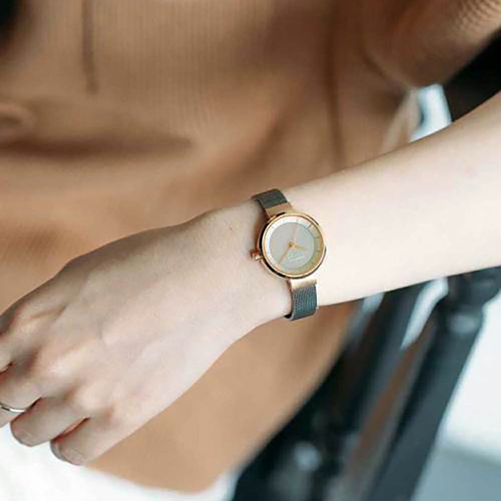 腕に馴染むしなやかなメッシュストラップは、細身の幅10mmのベルトを採用することで、日本人女性の腕元にも馴染みやすく、ブレスレットの重ね付けなど、腕元にスマートな印象を与えてくれます。