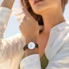 このモデルは薄型で小ぶりなケースにミラーダイヤル(文字盤)を採用し、小さめの時計を好む女性はもちろん、トレンドの小サイズ感で着用したい男性にも理想的です。