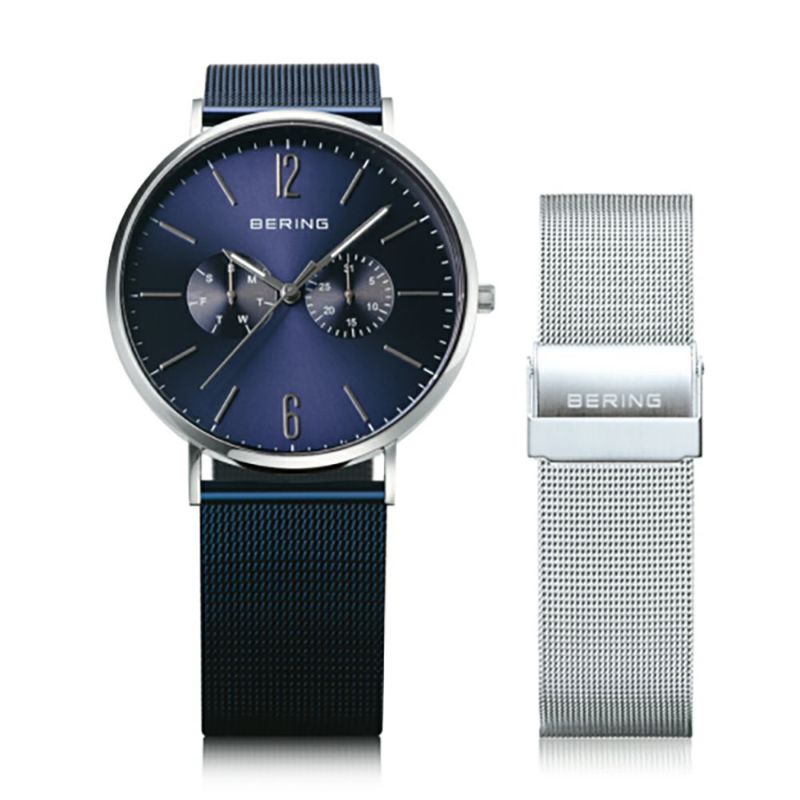 BERING Unisex Changes Mesh&Mesh 14240-307(ベーリング腕時計 チェンジズ ブルー&シルバーメッシュベルト)