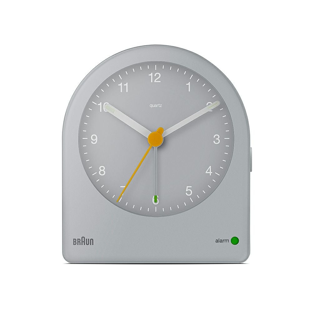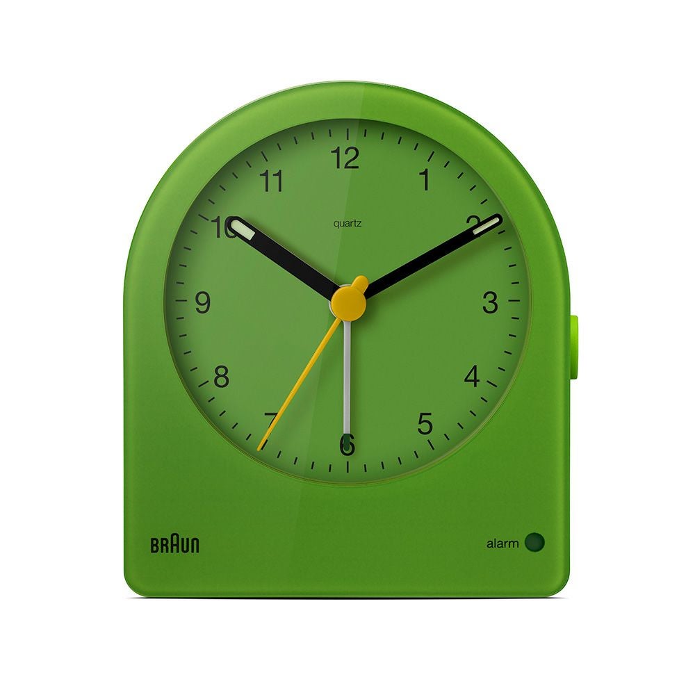 BC22クラシックアラームクロックの特徴的なフォルムは、1984年にディーター・ラムスとユーゲン・グルーベルが手掛けたAB2クロックをベースにデザインされ、そのすっきりとしたシンプルなダイヤルデザインと、先端が光る針のコントラストは優れた視認性を実現しています。