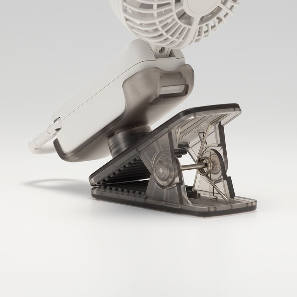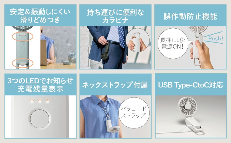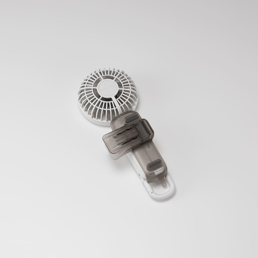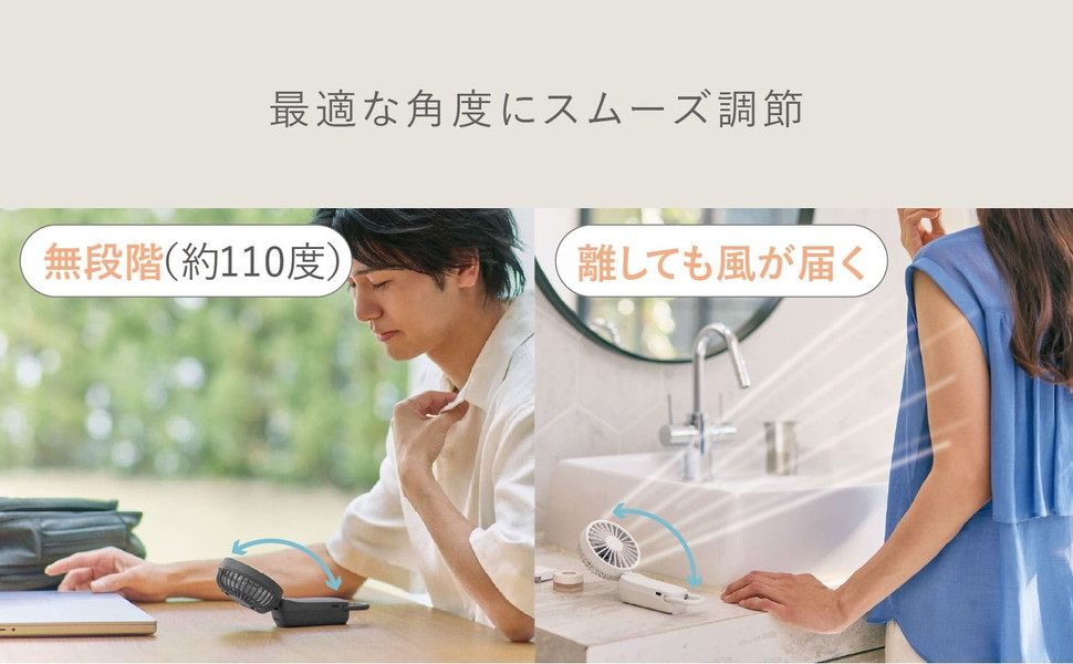 両手がふさがるシーンでも快適に風に当たることができます。