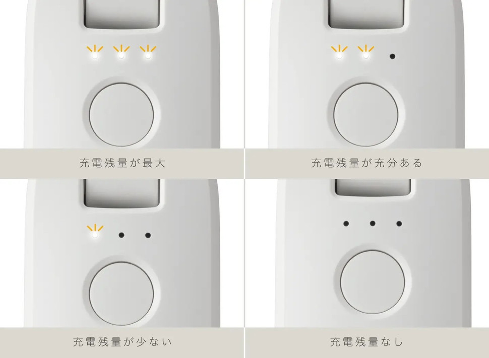 ●3つのLEDライトで充電残量をお知らせ